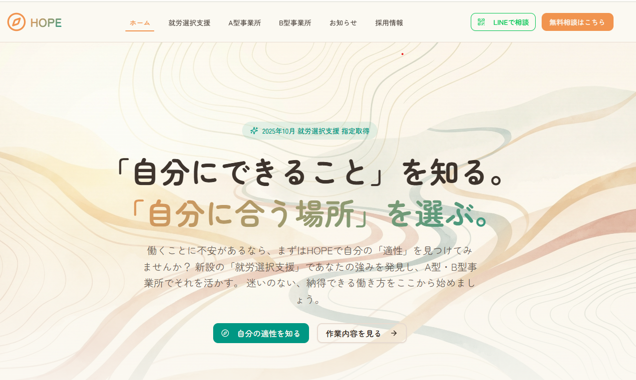 適性の発見から就労まで、HOPEで一貫してサポート。 環境が変わる不安を軽減します。